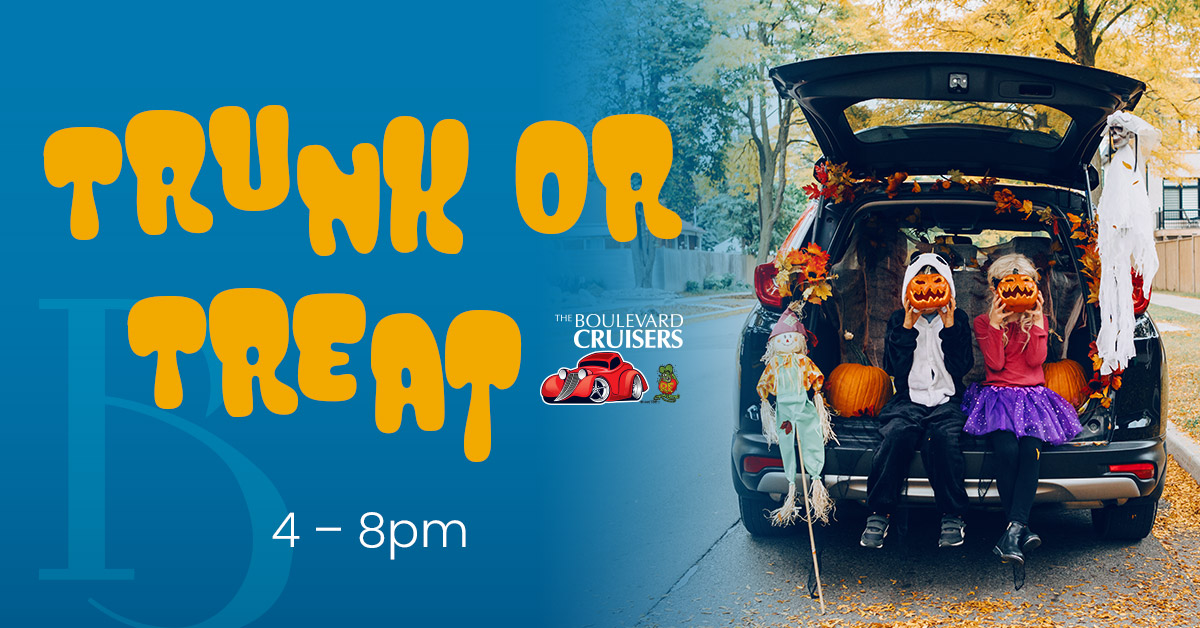 Wear your best Halloween costume and join us on Saturday, 10/23 for Trunk or Treat! Come from 4-8pm and get your treats from 5–7:30pm. All ages are welcome!